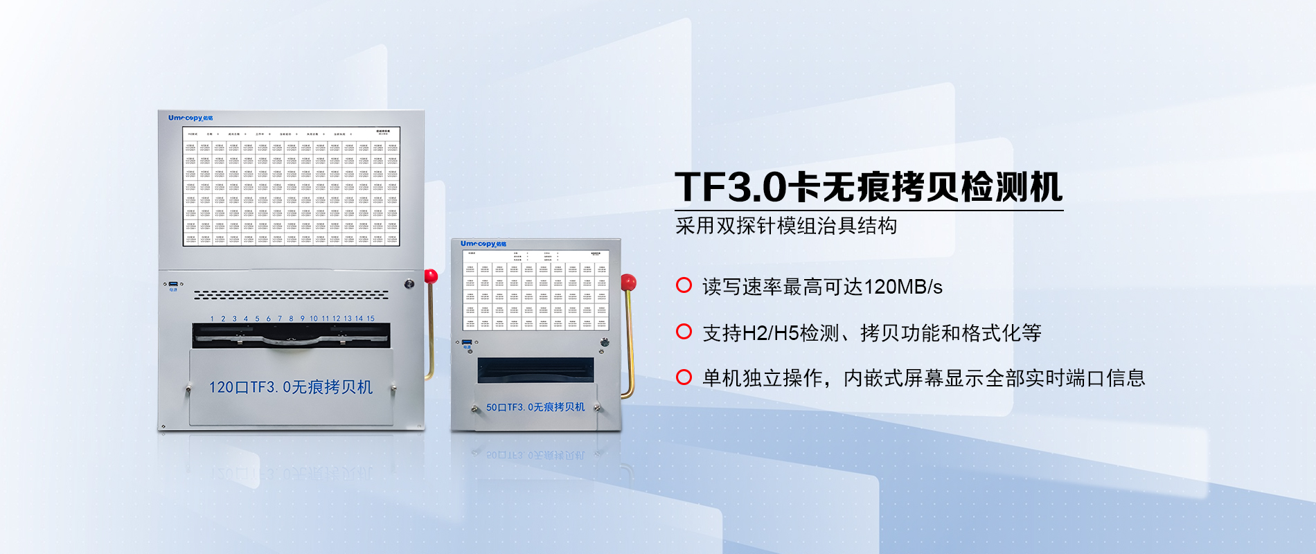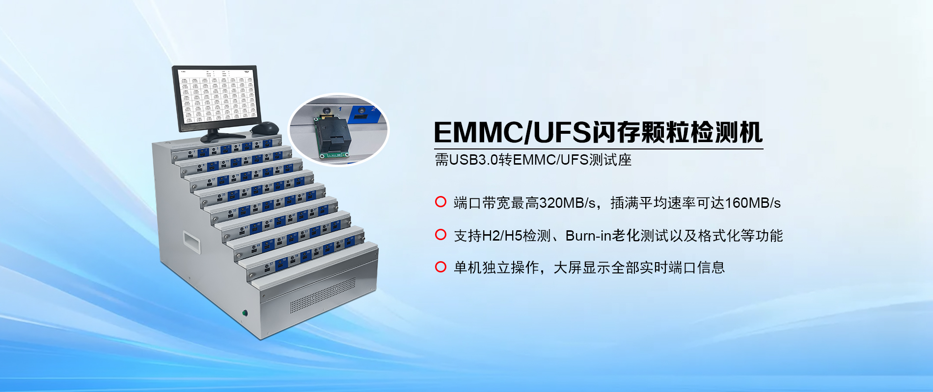 SSD硬盘常高温老化测试机、TF/UDP无痕拷贝检测机、USB3.0拷贝机、客制自动化设备等。