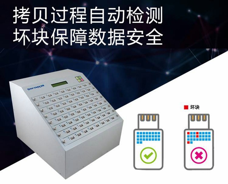 9、支持慢速踢除功能,在拷贝时低于设定读写速率的U盘直接报错,从而保障整体拷贝速度和生产效率。