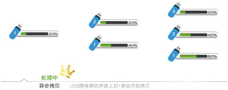 11、支持异步拷贝模式,拷贝不用等,即插即拷,拷贝完就拔掉,真正达到最高效率产能。
