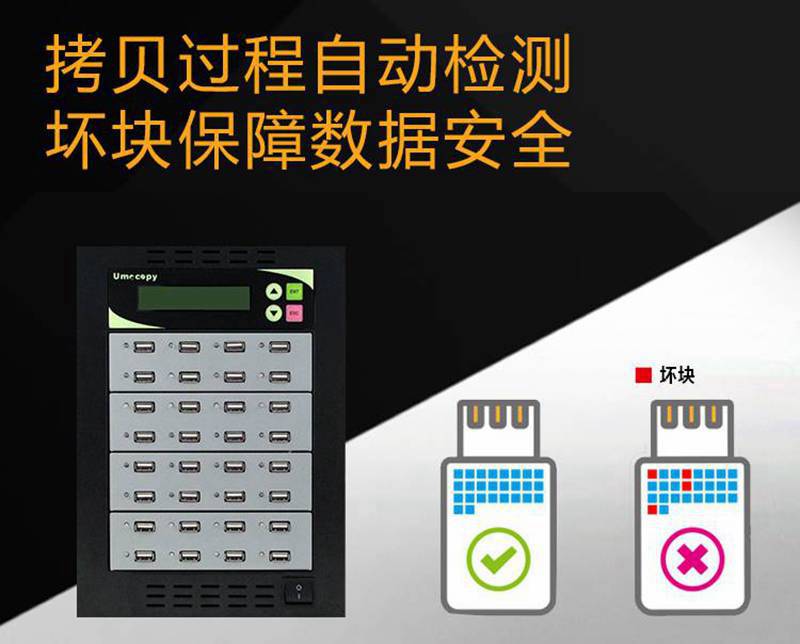 9、支持慢速踢除功能,在拷贝时低于设定读写速率的U盘直接报错,从而保障整体拷贝速度和生产效率。