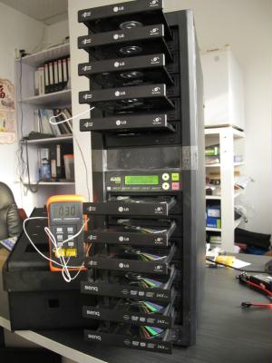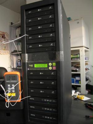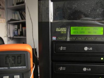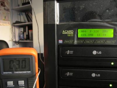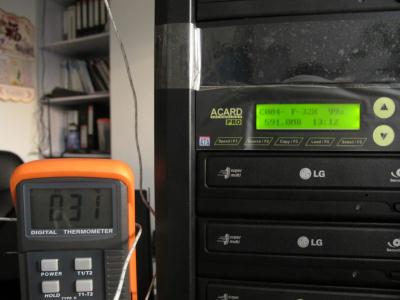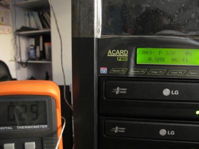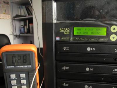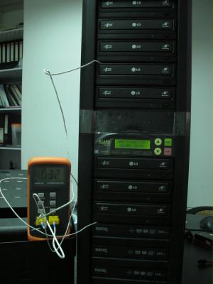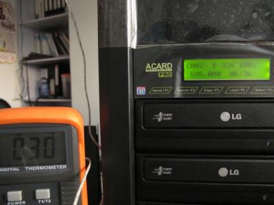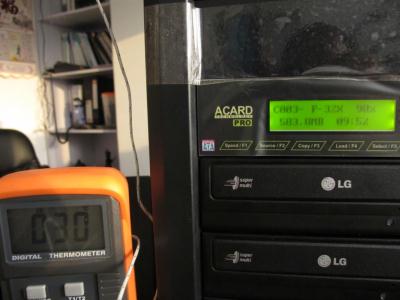 开机等几分钟,刻录机温度降低至比室温水平(刚刚测试完普通拷贝机箱,刻录机温度在40℃)