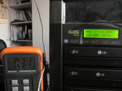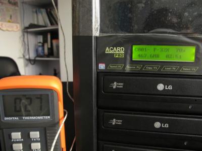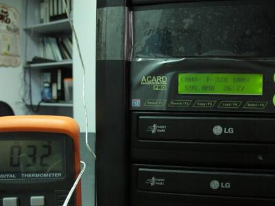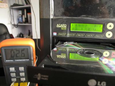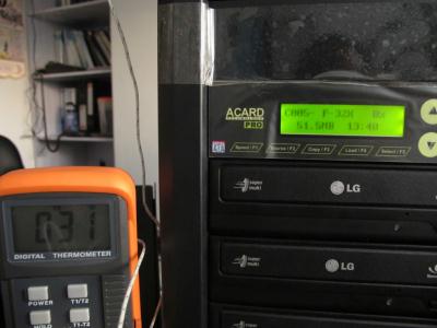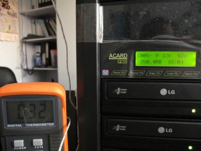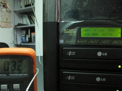 上述结果说明:当室温在25℃时,【至强版】拷贝机箱的刻录机温度会升至32℃,并在32℃徘徊!