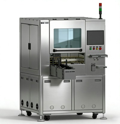 系统采用自动化盘装上料模式,将盘装芯片放入上料仓后,设备可自动完成换盘、叠料与输送,全程无需人工值守。